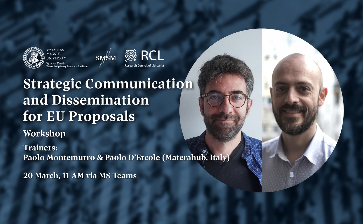 The VMU Vytautas Kavolis Transdisciplinary Research Institute invites the academic community to a workshop on strategic communication and dissemination for EU proposals.